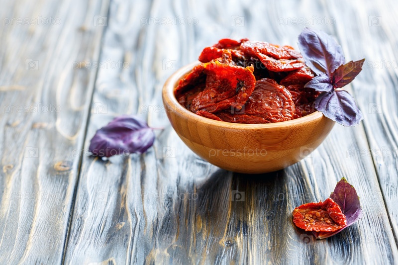 Высушенные на солнце помидоры и фиолетовый базилик
