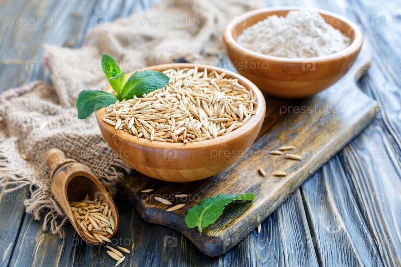 Чаши овса и овсяной муки
