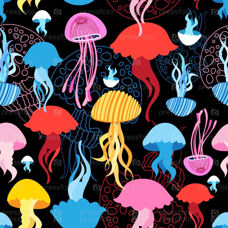 Бесшовный фон с медузами