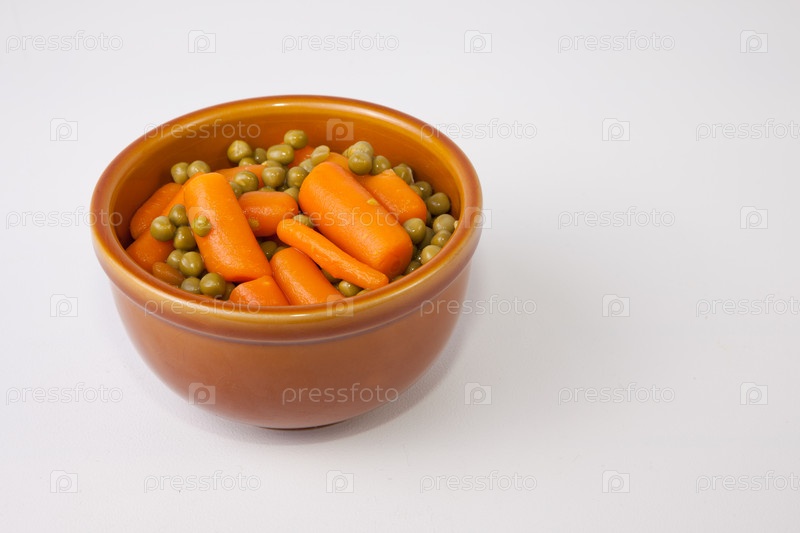Чаша вареной моркови и зеленого горошка