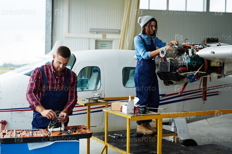 Современные инженеры, ремонтирующие реактивный самолет