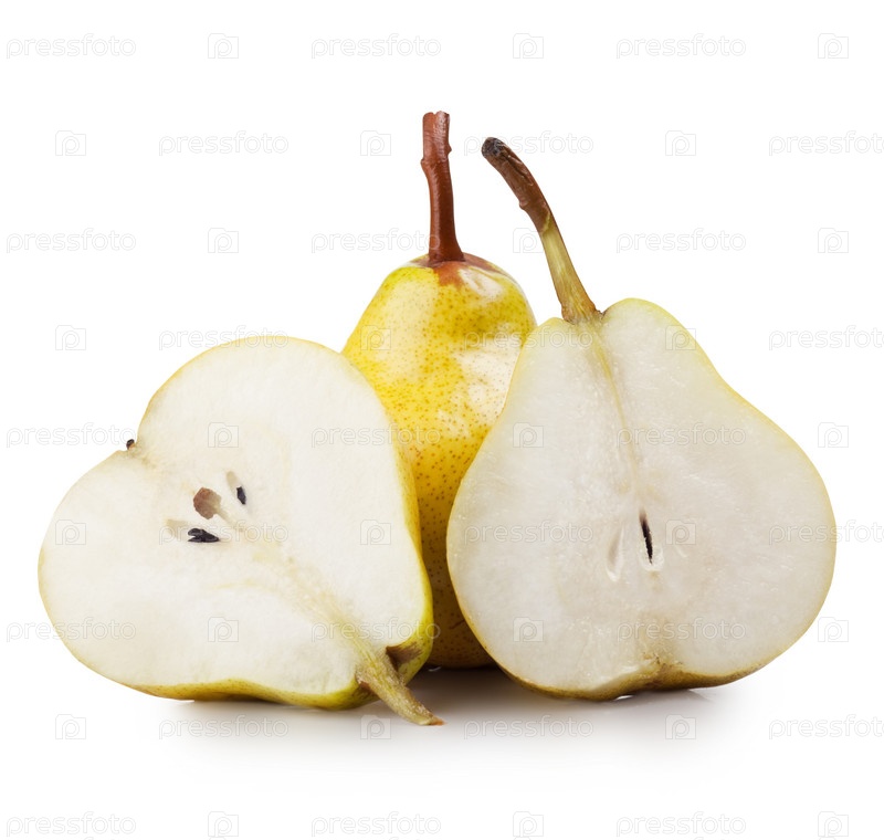 Разрезанная груша на белом фоне