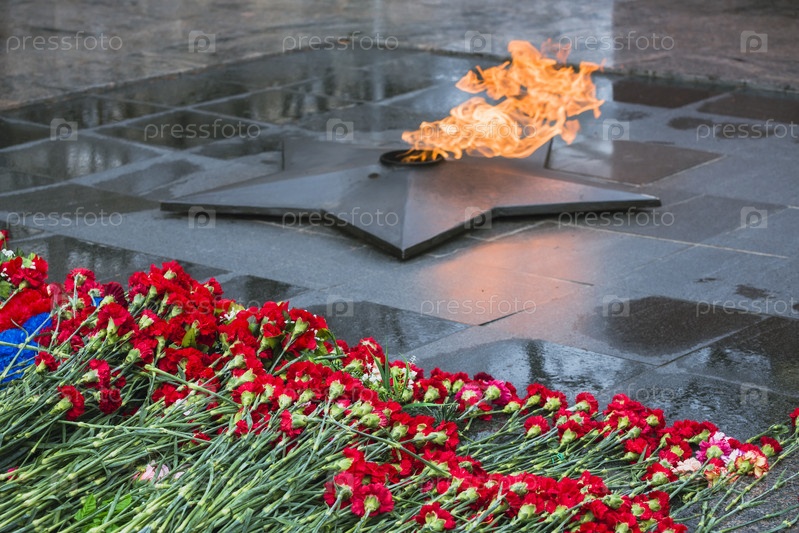 Цветы на мемориале вечный огонь