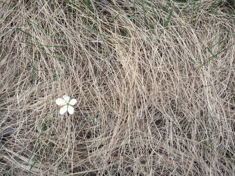 Ранние весенние цветы прорастают сквозь прошлогоднюю траву