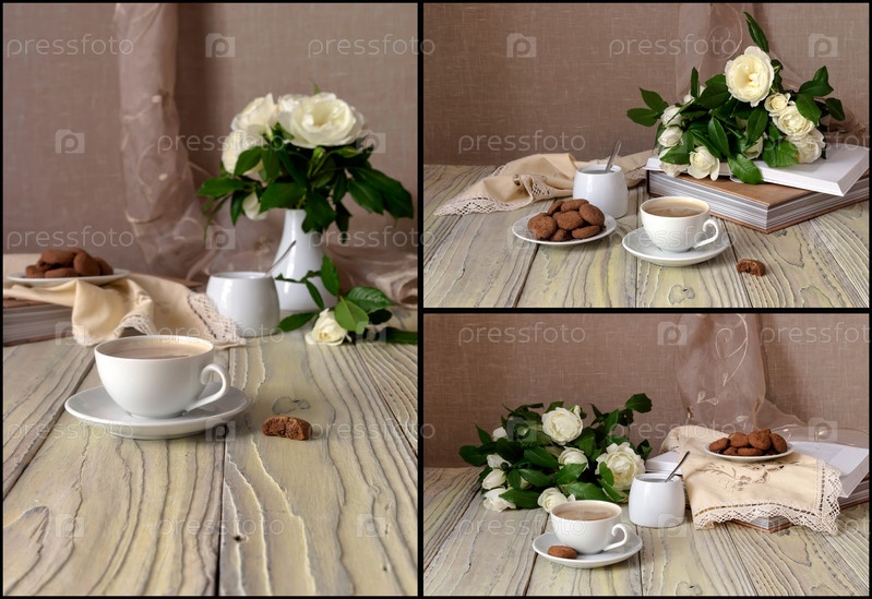 Натюрморт с каппучино, розами и шоколадом