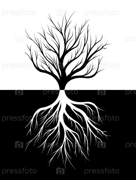 Силуэт дерева и его корни
