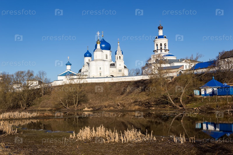 Белоснежный монастырь с небесно-голубыми куполами ранней весной