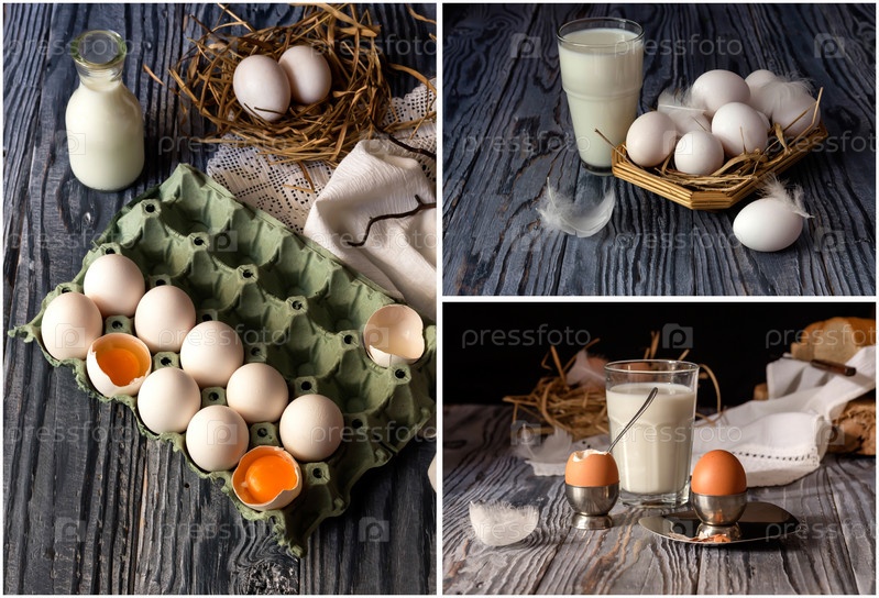 Коллаж из сырых и вареных яиц