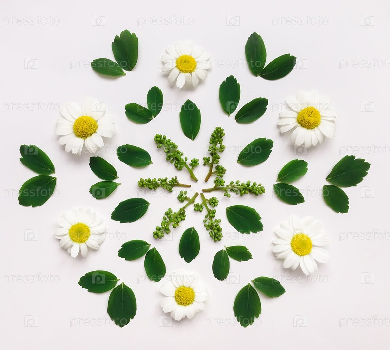 Декоративные мандалы с ромашкой и листьями