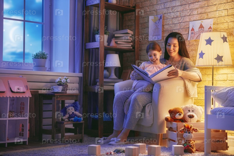 Семья читает перед сном