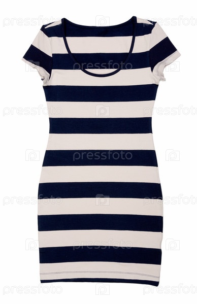Модное женское полосатое платье на белом фоне