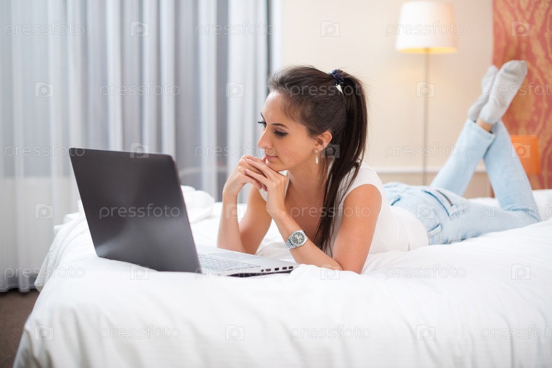 Лежа на кровати с компьютером