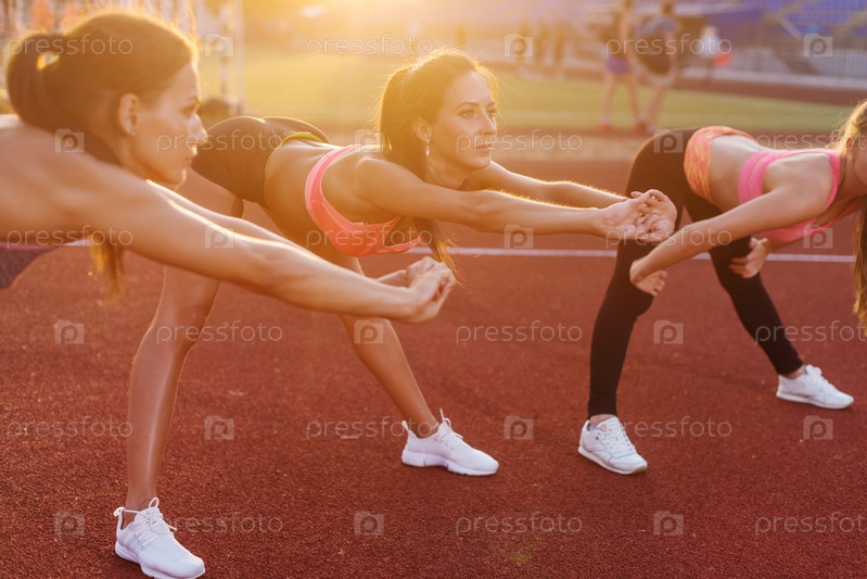 Молодые женщины, выполняющие разминку