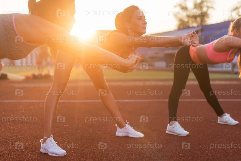 Молодые женщины, выполняющие разминку
