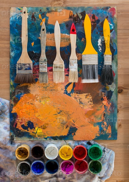 Палитра с кистями и гуашью