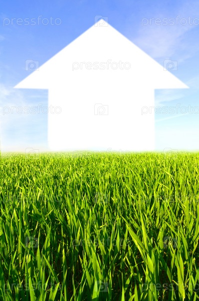 Зеленая трава и синее небо. Концепция переработки