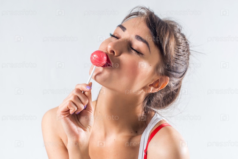 Молодая брюнетка с леденецом