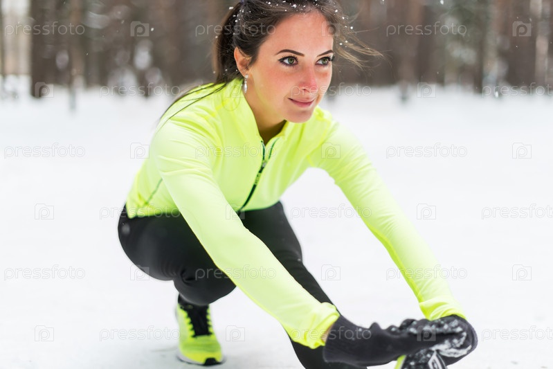 Женщина делает упражнения в зимнем парке