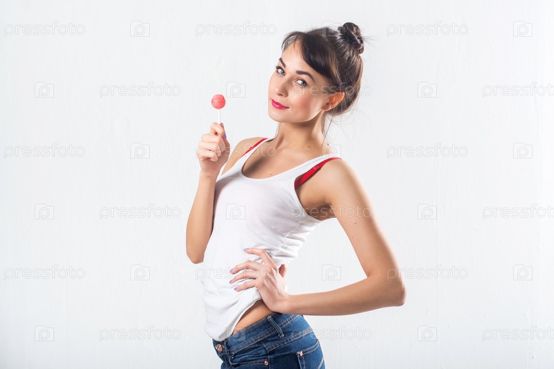 Молодая брюнетка с леденцом