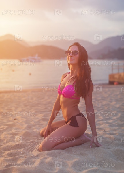Привлекательная молодая брюнетка на пляже