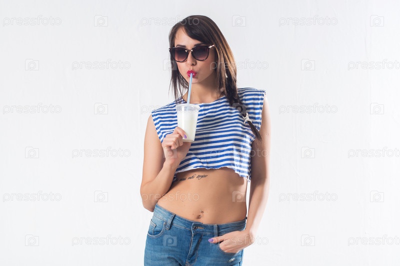 Молодая брюнетка с коктейлем