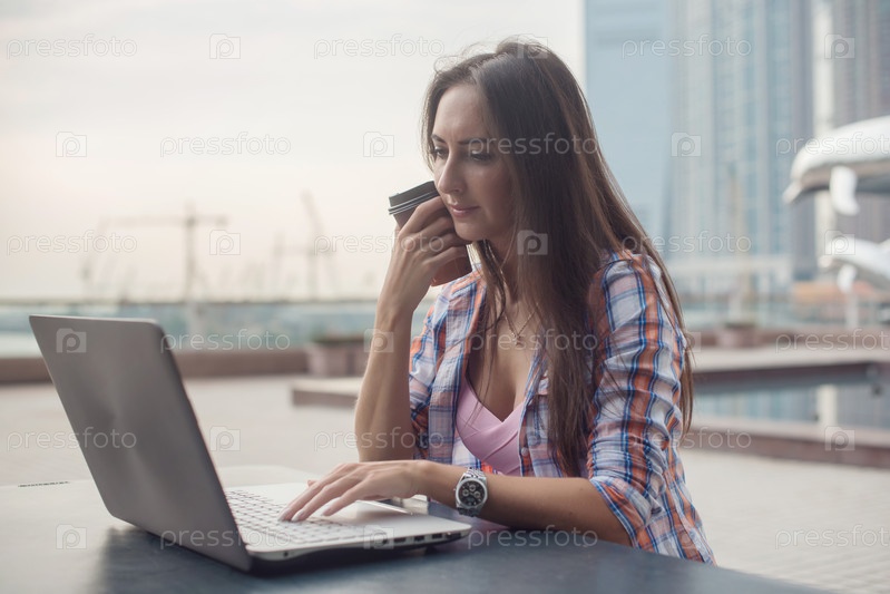 Молодая женщина, используя ноутбук