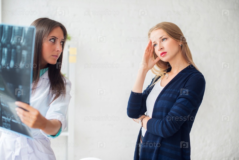 Доктор показывает рентгеновский снимок пациенту