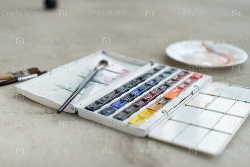Акварельные краски с палитрой