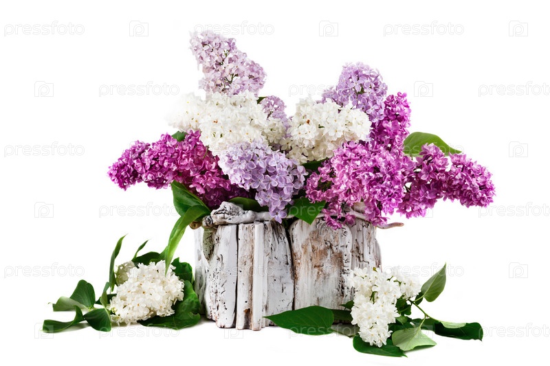 Сирень разных цветов с листьями