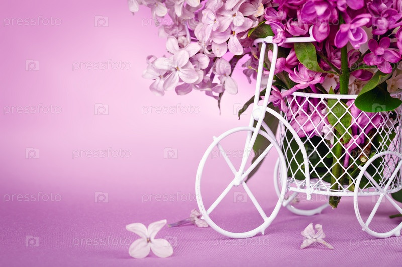 Веточка сирени в декоративной корзинке