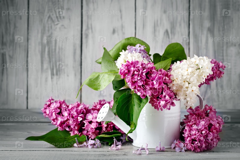 Цветы сирени в декоративной лейке