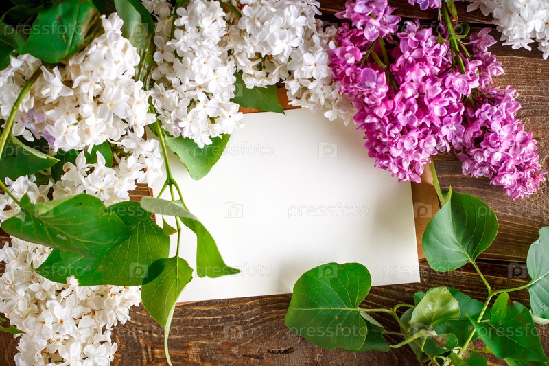 Цветы сирени на деревянных досках с открытками
