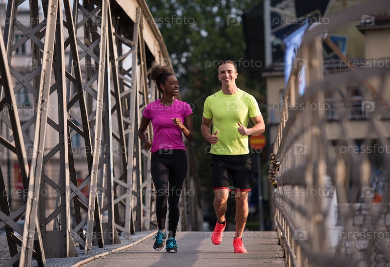 Молодая пара бежит трусцой