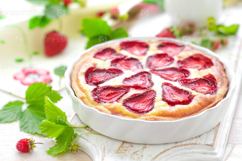 Вкусный клубничный пирог со свежими ягодами