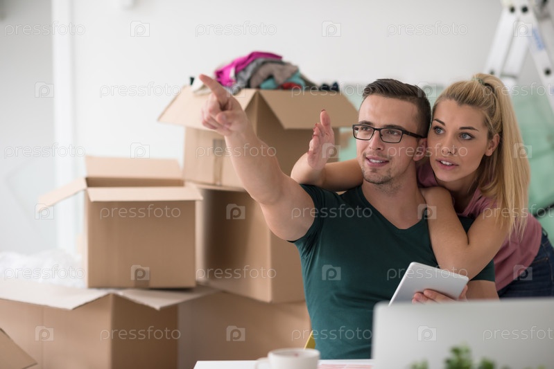 Молодая пара в новом доме