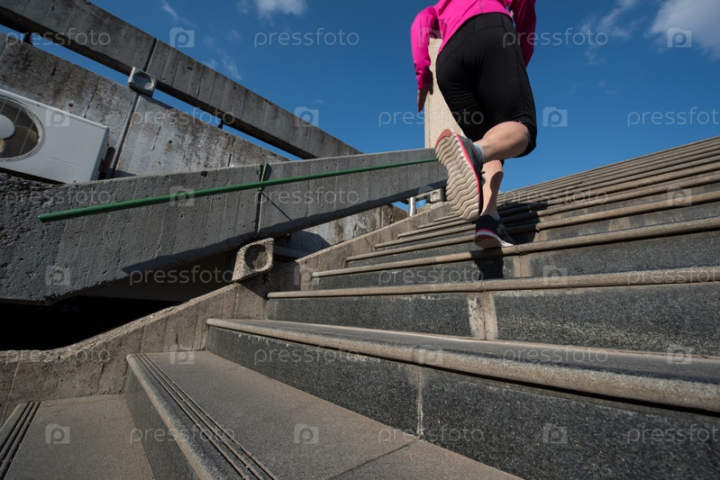 Женщина бегает по ступеням