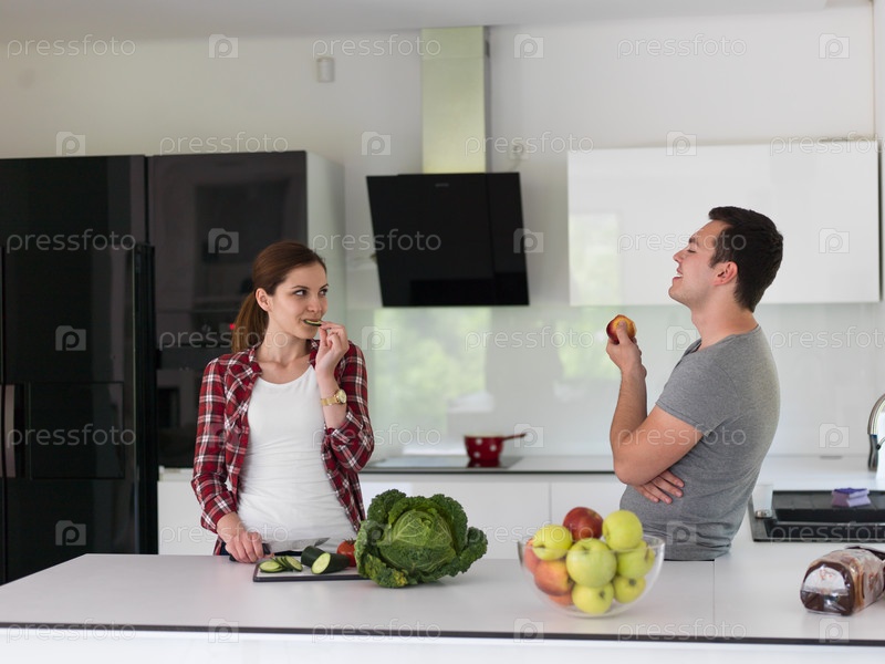 Молодая красивая пара в кухне