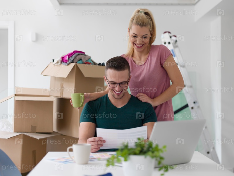 Молодая пара в новом доме