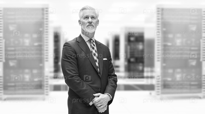 Старший бизнесмен в серверной комнате