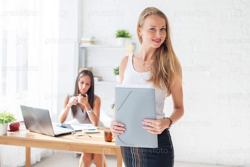 Портрет счастливый деловой женщины с папкой