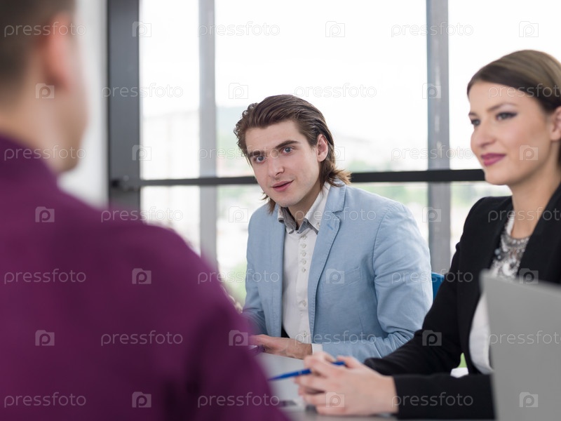 Бизнес-группа на совещании в современном офисном здании
