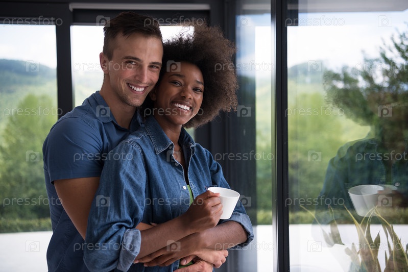 Романтическая молодая пара в современном доме