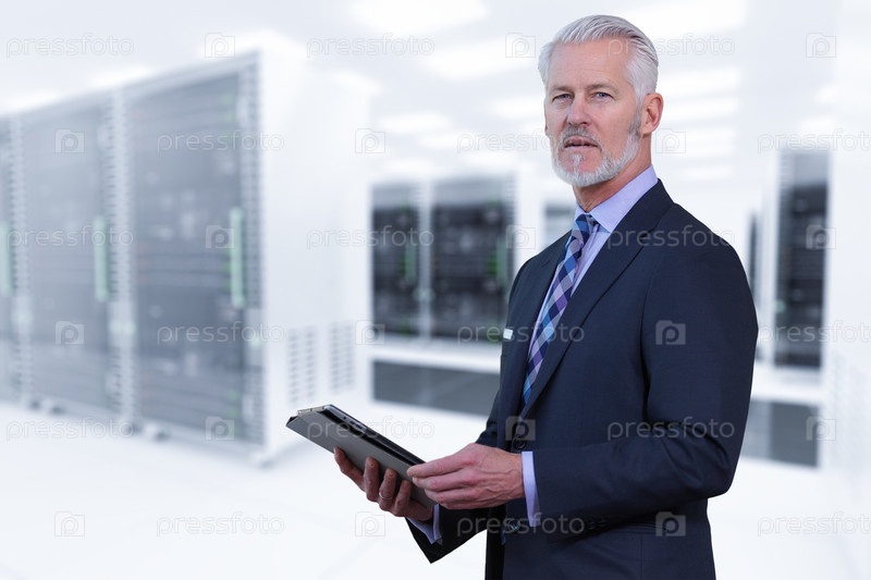Старший бизнесмен в серверной комнате