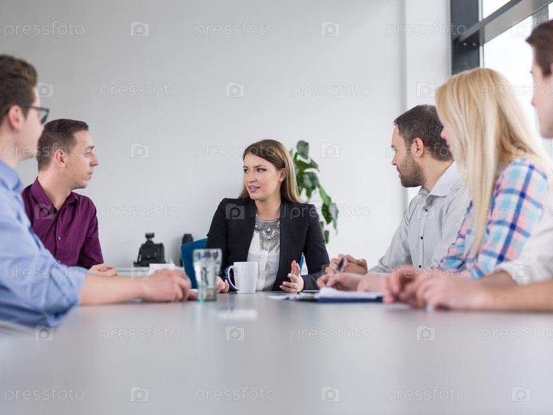 Бизнес-группа на совещании в современном офисном здании
