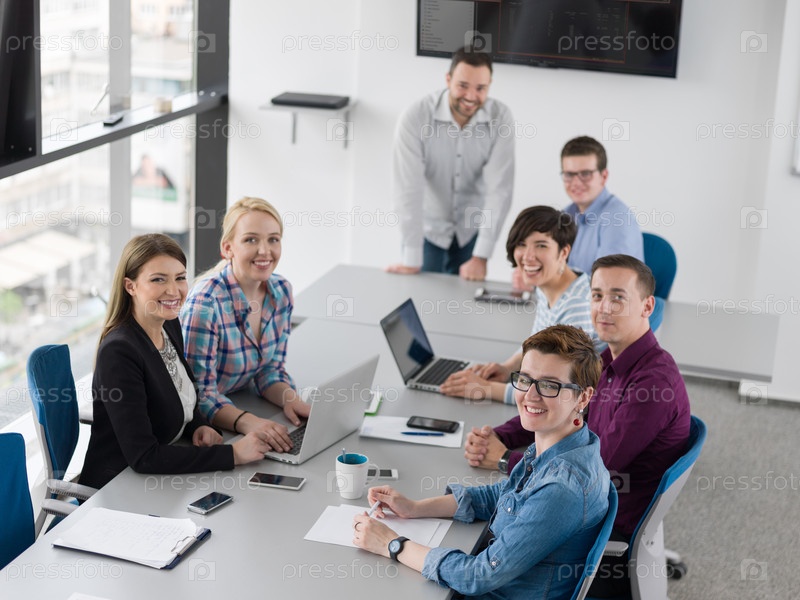 Бизнес-группа на совещании в современном офисном здании