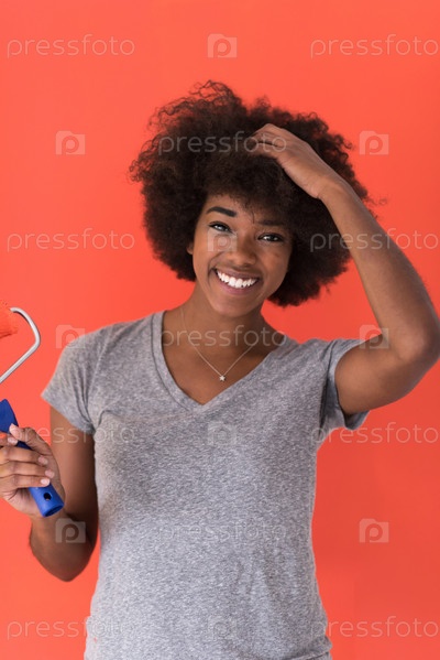 Черная женщина красит стены