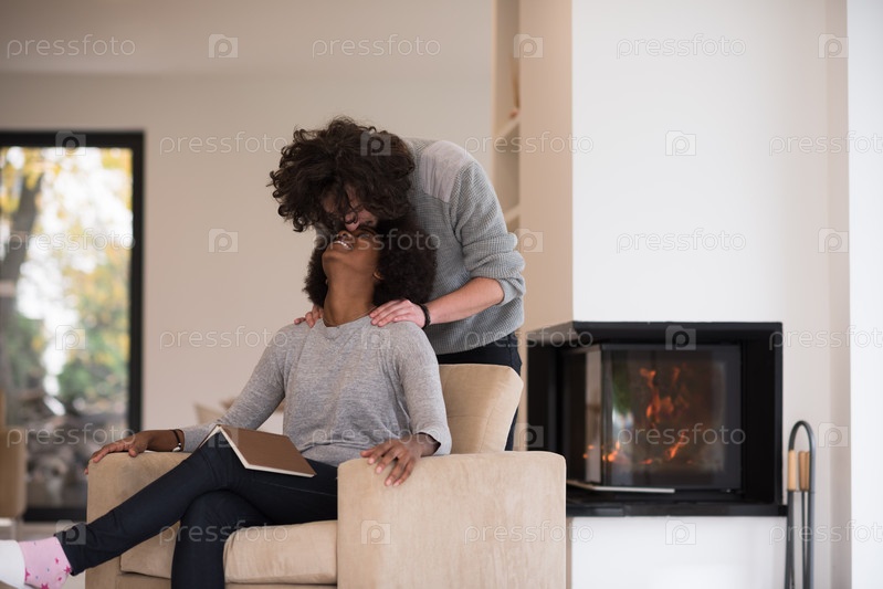 Веселая пара перед камином