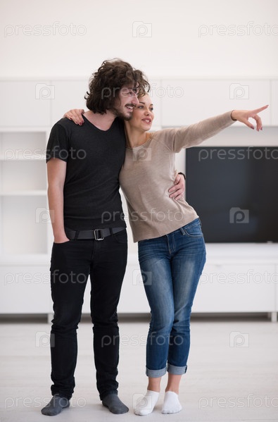 Пара обнимаются в своем новом доме