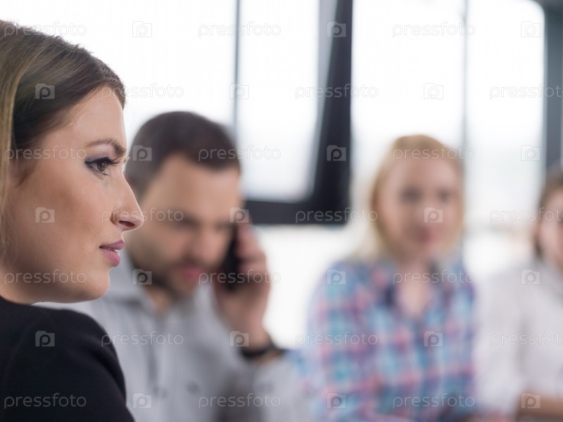 Бизнес-группа на совещании в современном офисном здании