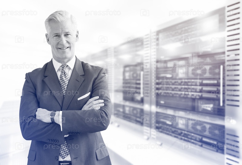 Старший бизнесмен в серверной комнате